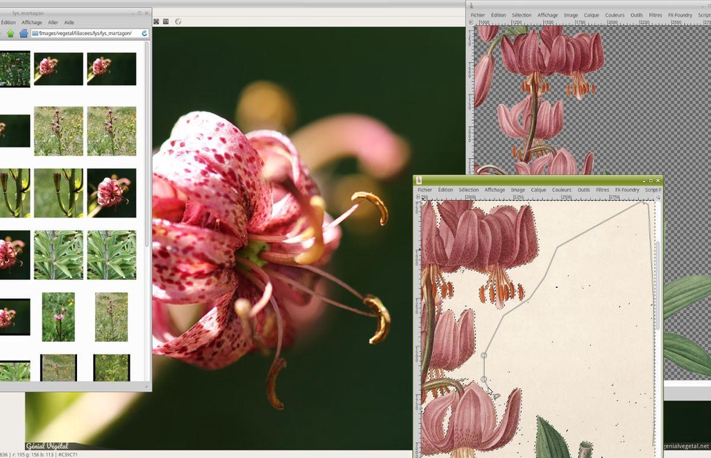 J'imagine et réalise des affiches botaniques basées sur des gravures anciennes. Mon travail se fait en plusieurs étapes :
